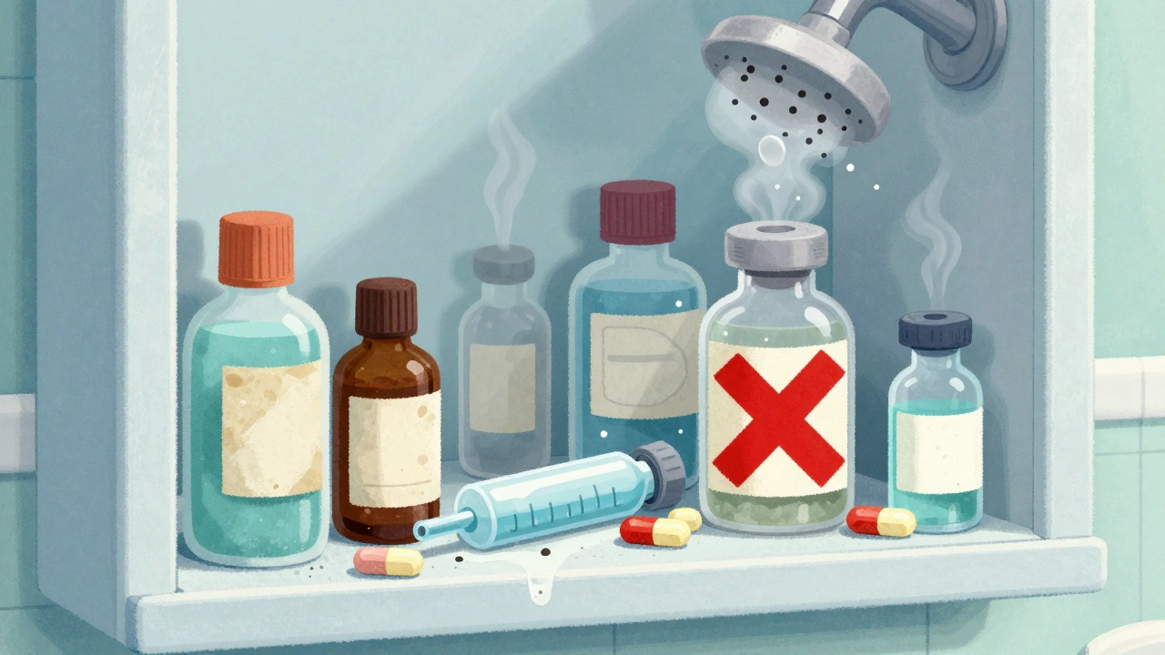 Yale New Haven Health found that humidity from showers can reduce medication potency by 15-25% in just six months. Heat from hot water pipes and steam makes things worse. Pills can stick together. Capsules soften. Liquids evaporate or grow mold.