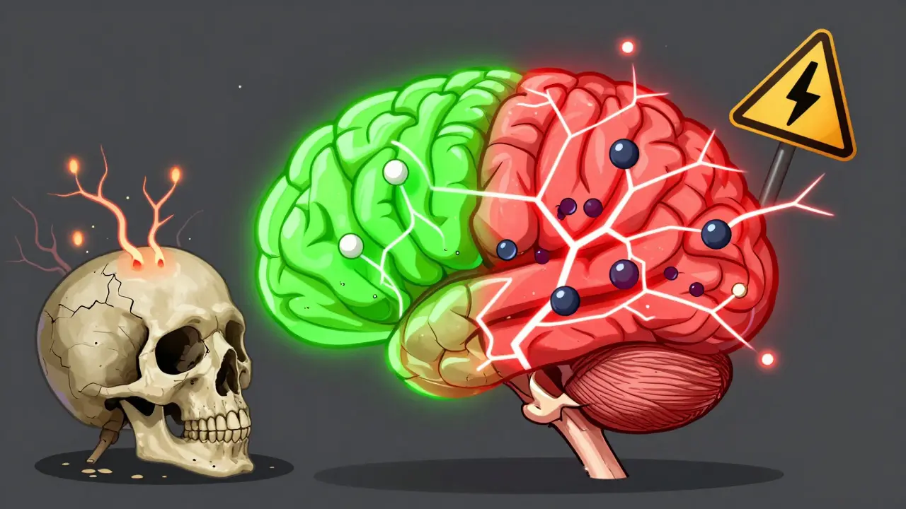 Serotonin and norepinephrine are brain chemicals that help regulate mood, alertness, and nerve activity. When tramadol floods the system with too much of them-especially in sensitive brains-it can overexcite neurons. This pushes the brain past its seizure threshold, the point where random electrical bursts turn into full-blown seizures.